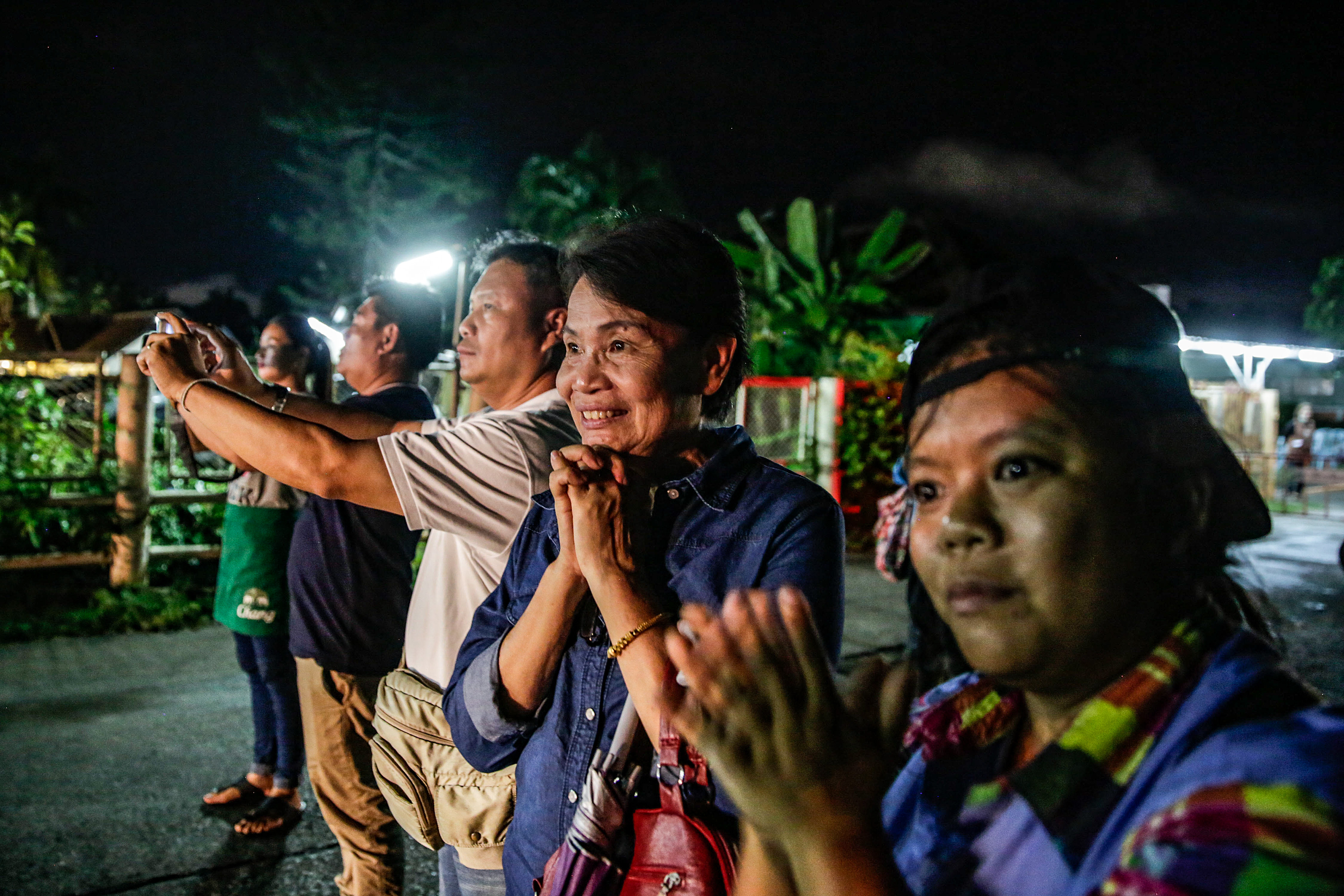 សន្និសីទកាសែតមួយកាលពីល្ងាចថ្ងៃអាទិត្យបានចាប់ផ្តើមជាមួយនឹងការទះដៃនិងការលើកទឹកចិត្តពីអ្នកកាសែតបន្ទាប់ពីមានការជួយសង្គ្រោះក្មេងប្រុសទាំងបួននាក់បានជោគជ័យ។ Narongsak បានបន្តថាក្មេងប្រុសដំបូងត្រូវបានជួយសង្គ្រោះនៅម៉ោង 5:40 នាទីល្ងាច។ ម៉ោងក្នុងស្រុកនិង 10 នាទីក្រោយមក។ ទីបីនិងទីបួនបានចាកចេញពីគុហានៅម៉ោង 7:40 និង 7:50 នាទី។